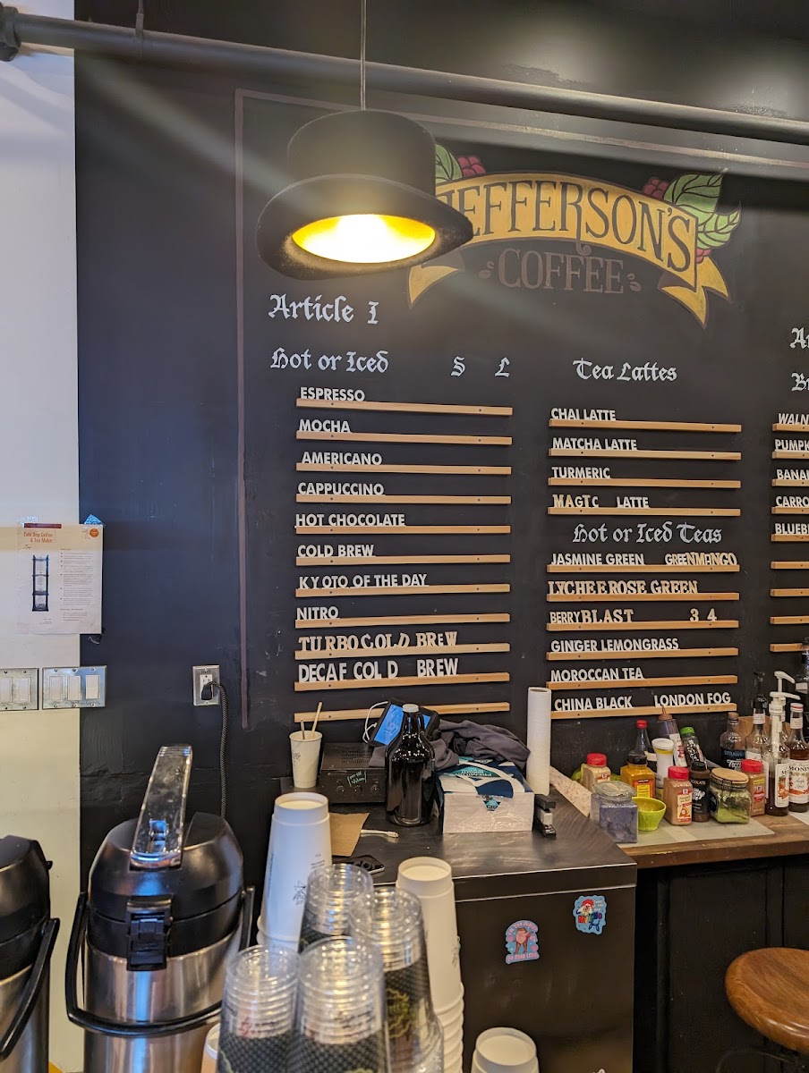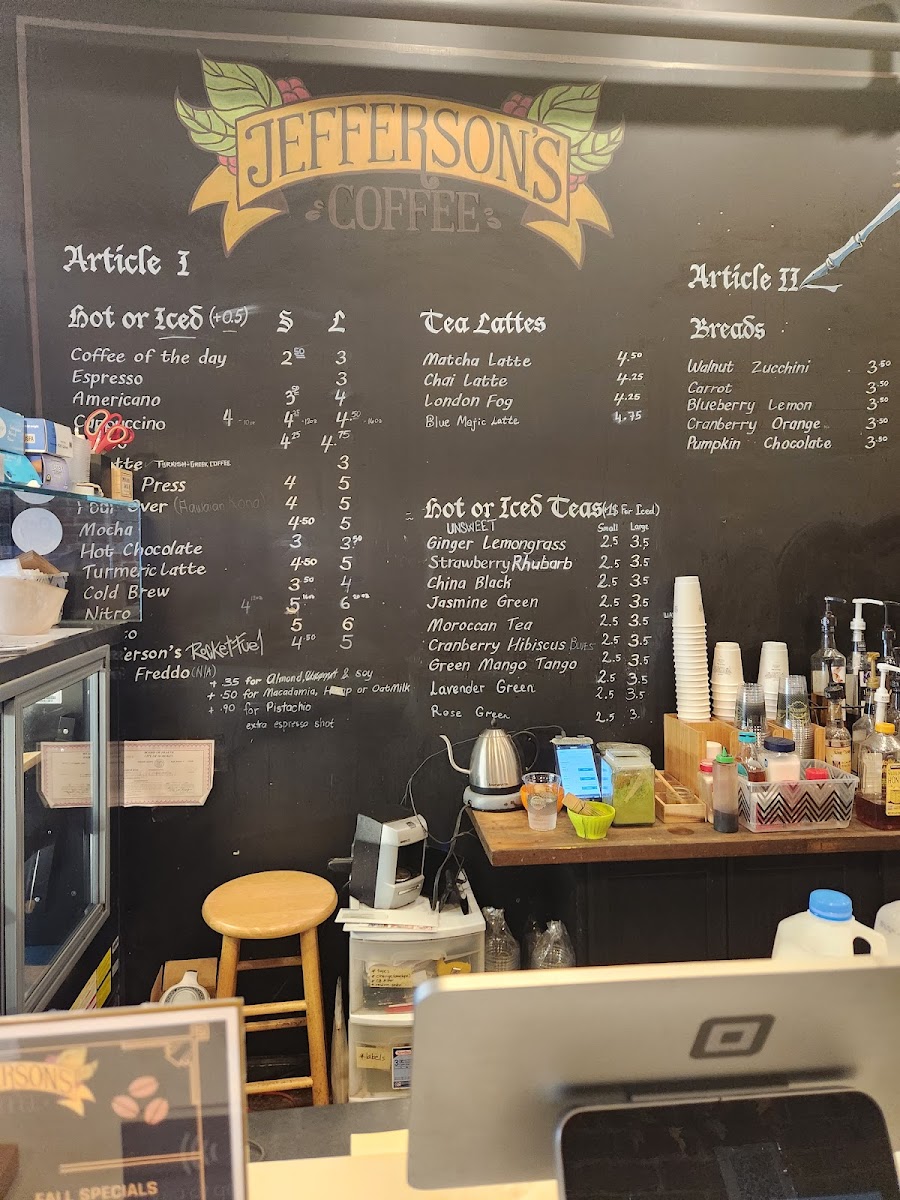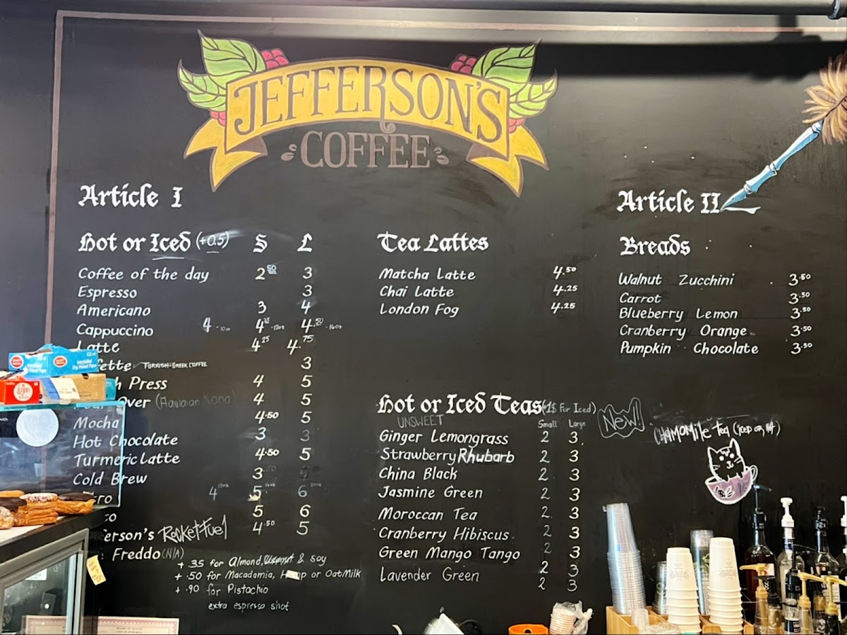 Welcome to Jefferson’s Coffee, a cozy gem located at 534 Washington St, Hoboken, NJ. This vibrant café boasts a diverse menu tailored for coffee enthusiasts and tea lovers alike. Highlights include rich Cold Brew Growlers for on-the-go enjoyment, and a selection of delightful lattes, including the mocha latte and the signature cappuccino—both known for their smooth textures and balanced flavors.